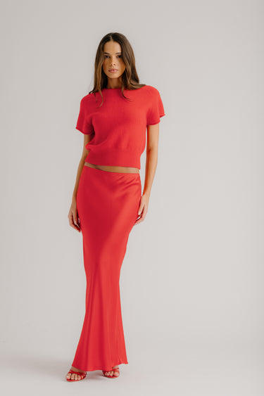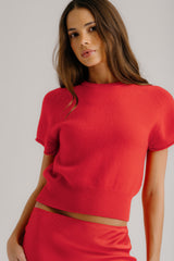 Short-sleeve raglan top in 100% cashmere with saddle seam detailing.