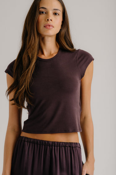 Fitted short sleeve baby tee in sandwashed jersey with a soft, smooth hand feel.