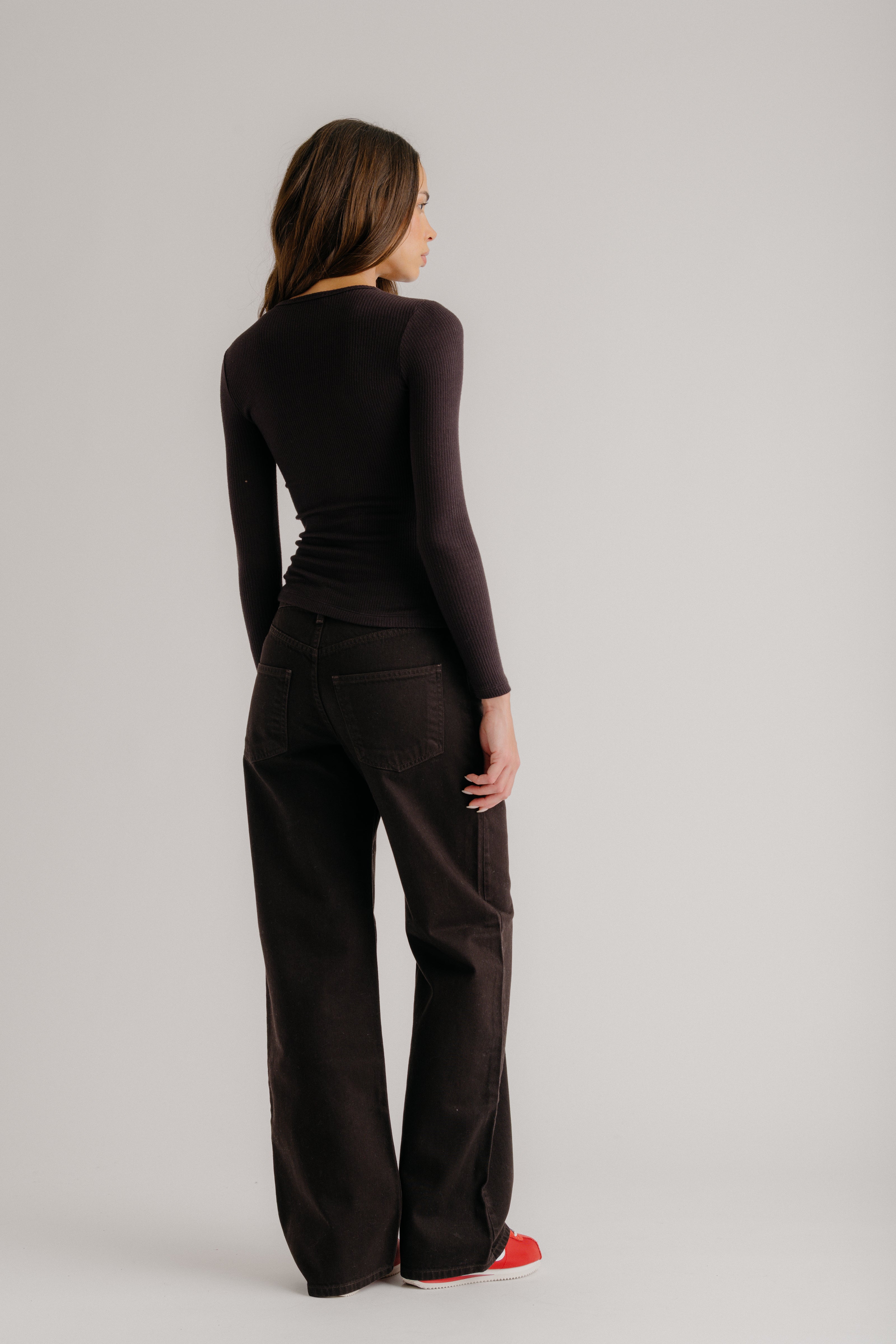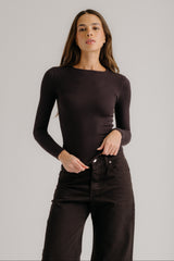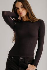 Fitted long-sleeve crewneck tee in ribbed knit.