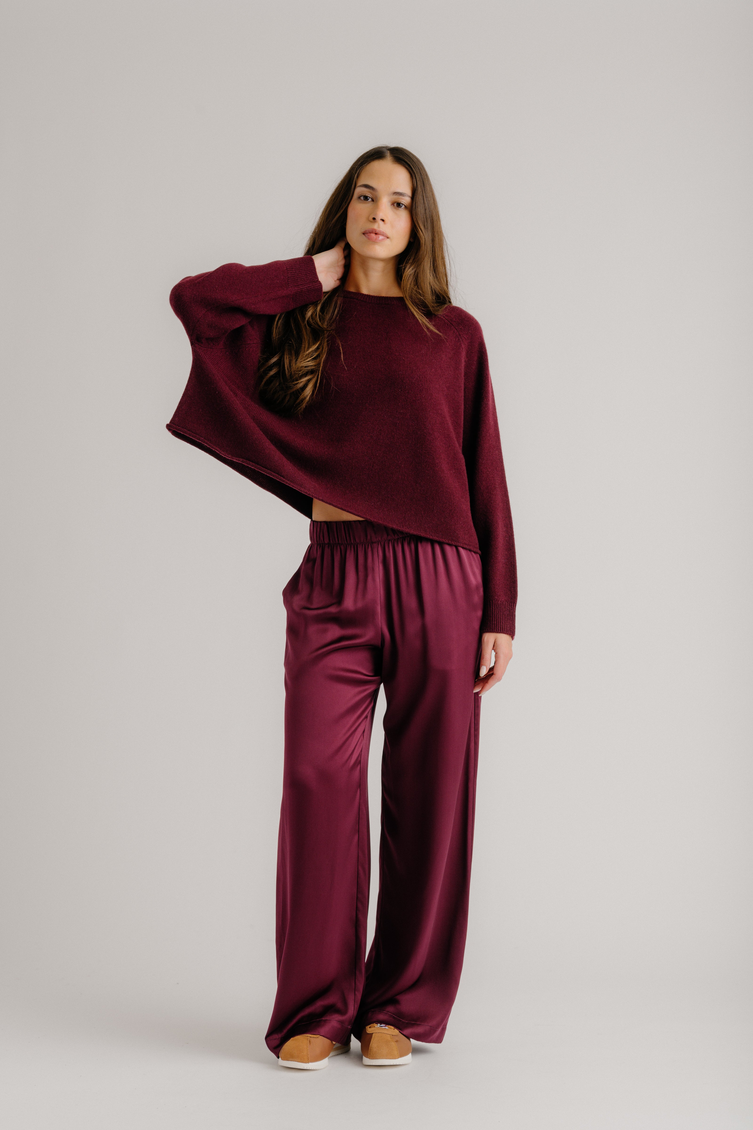 Raglan crewneck sweater in 100% cashmere jersey stitch with saddle seam detailing.