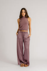 BRYNN WIDE LEG SILK PANT| DUSTY VIOLET